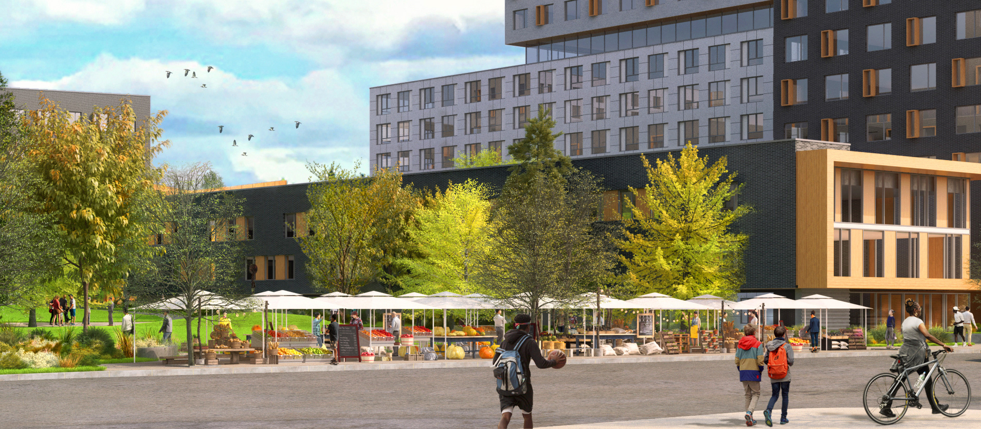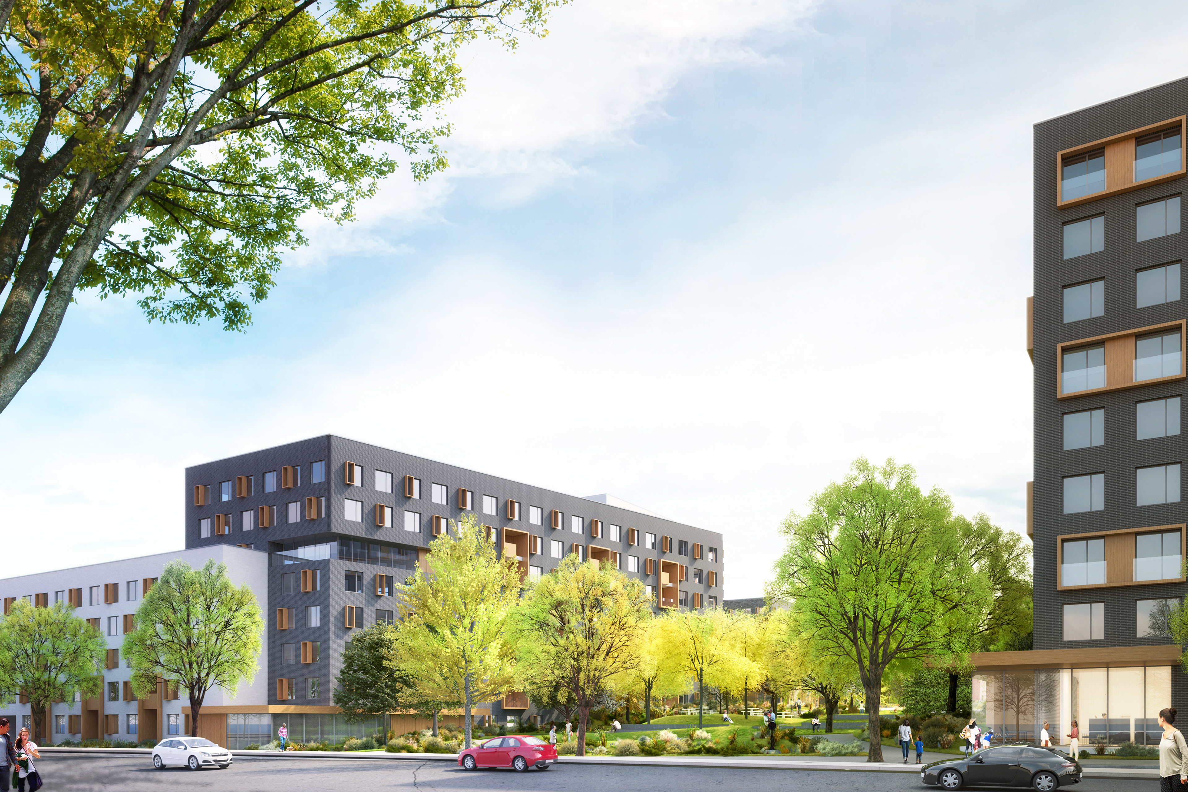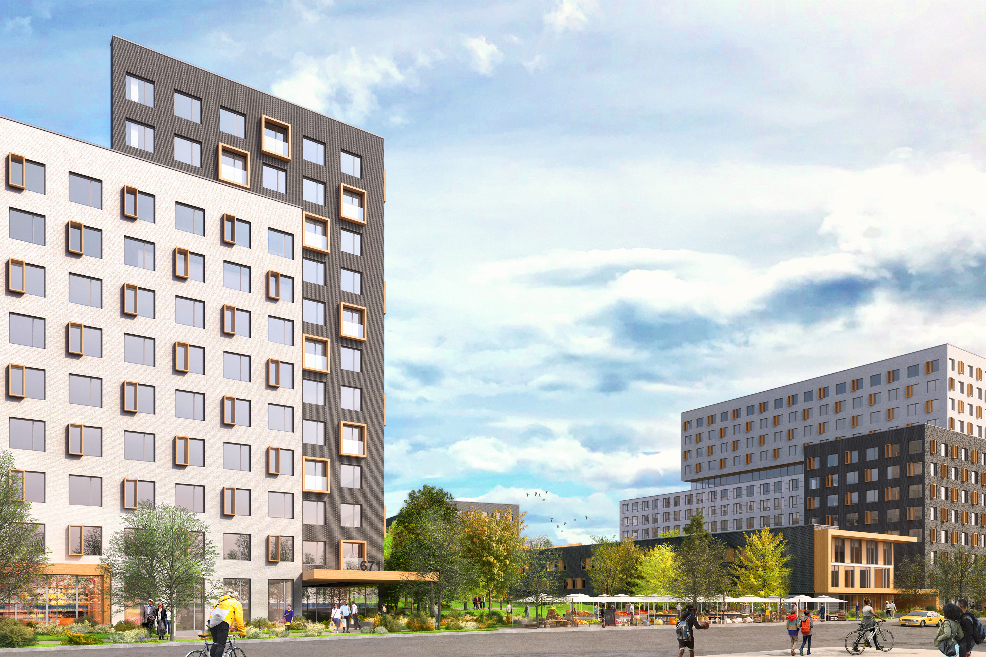 At almost 7 acres of land Kingsboro Common’s main design objective was to maximize all efforts for the surrounding community. This began with the initiative of giving as much outdoor space to the community as possible. The North / South axis, known as the Commons, took advantage of the existing hill-scape of the site and allowed for Clarkson busy street to open out onto an expansive green space. By carving out this space, the building masses created a language as to its interactions with private and public area. Facades that faced onto the public park and street carried a different materiality then those facing on the private courtyards.