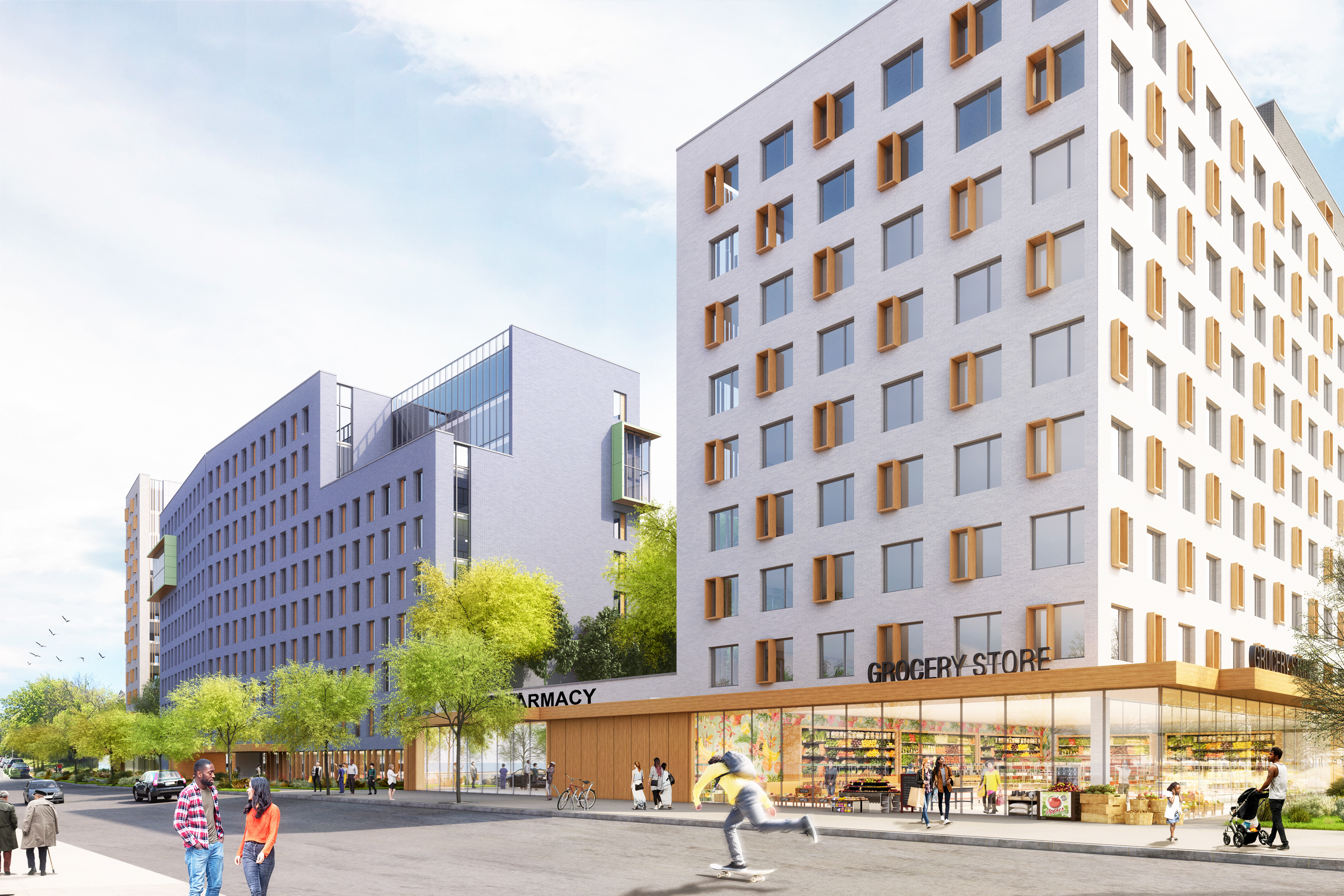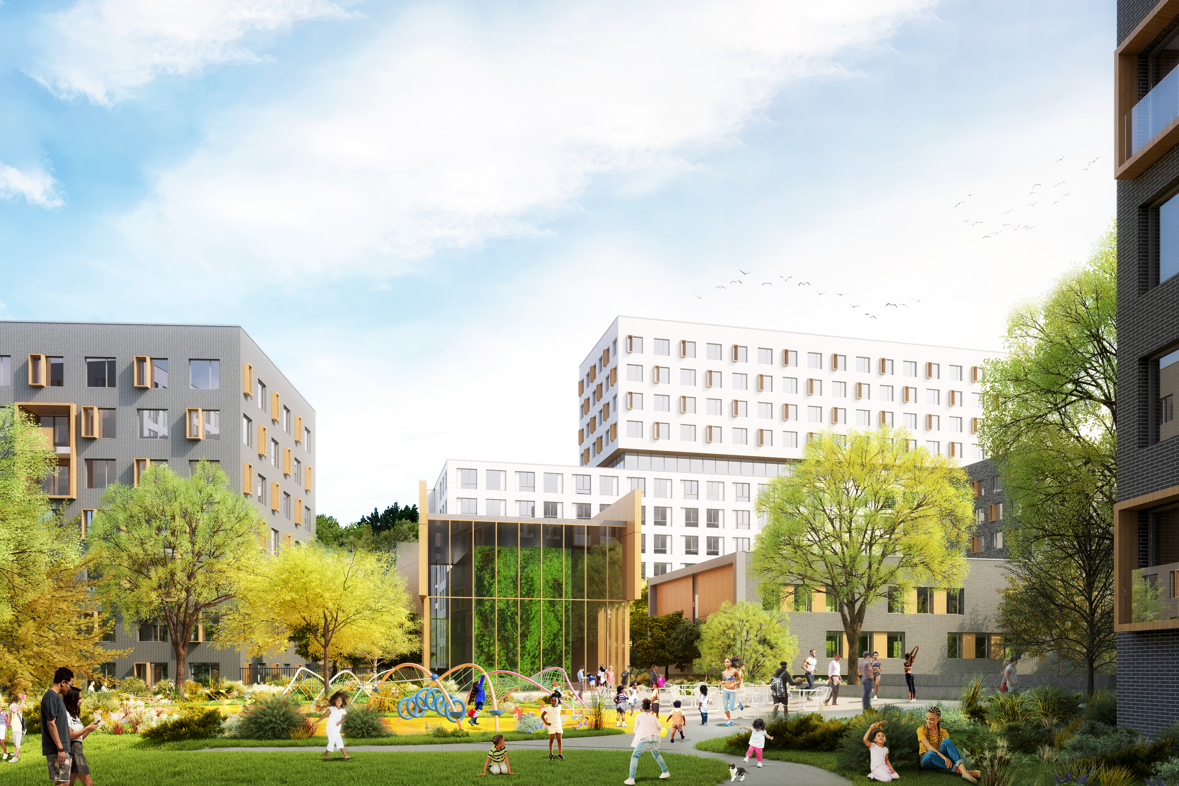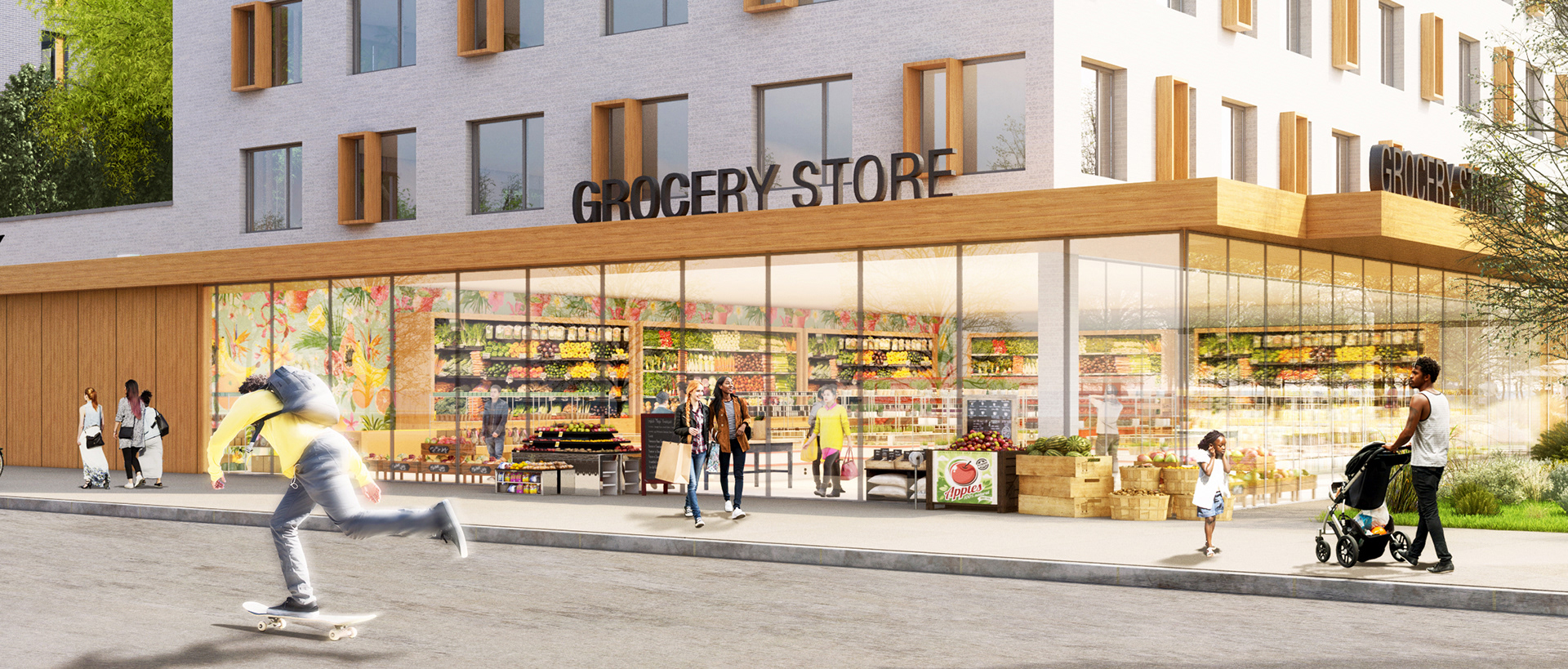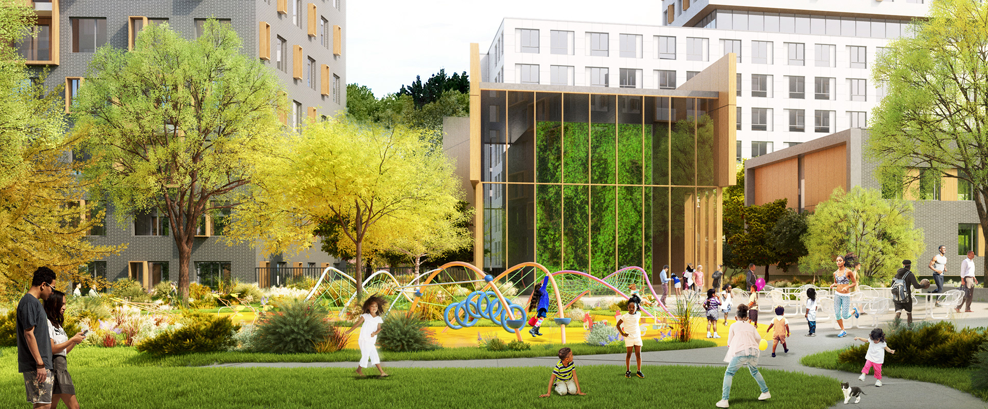 At almost 7 acres of land Kingsboro Common’s main design objective was to maximize all efforts for the surrounding community. This began with the initiative of giving as much outdoor space to the community as possible. The North / South axis, known as the Commons, took advantage of the existing hill-scape of the site and allowed for Clarkson busy street to open out onto an expansive green space. By carving out this space, the building masses created a language as to its interactions with private and public area. Facades that faced onto the public park and street carried a different materiality then those facing on the private courtyards.
